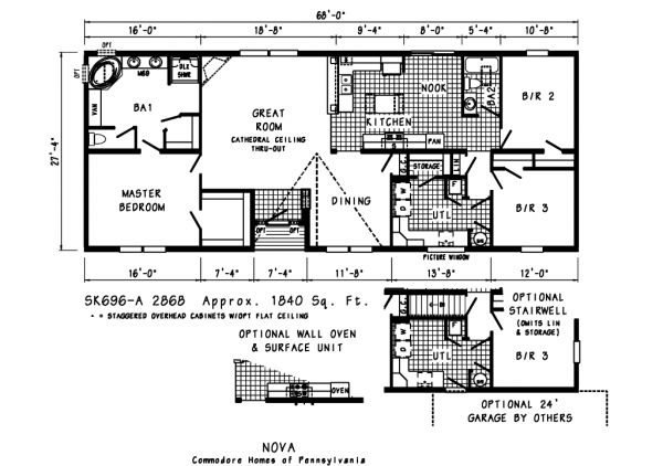 The Nova SK696A (3BR/2BA) is a great home, introduced in the spring of 2007 to considerable fanfare. Designed with a Great Room, separate Dining Room, and a spacious Utility Room.