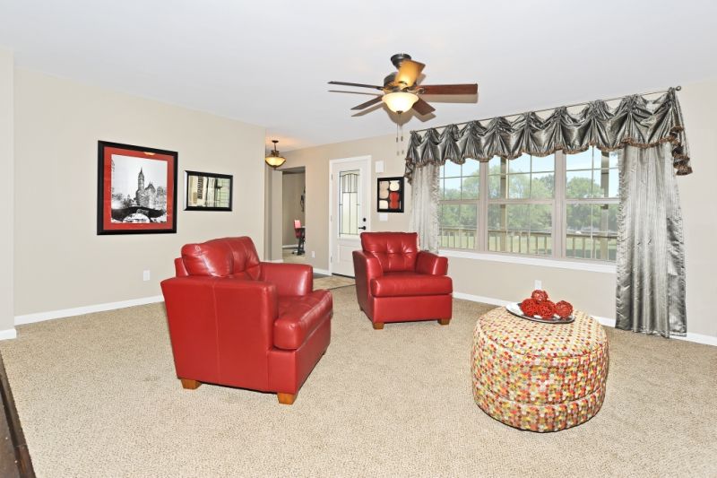 The secondary bedrooms are down the hall from the kitchen, they both feature a walk in closet. The second bath, utility room, and the basement stairwell are also in this hallway. The master bedroom is on the opposite end of the home, it features a large walk in closet and a very spacious, a sitting room, and luxurious master bath. The bath has double lav sinks, a linen closet, walk in shower, soaker tub, and a closed off toilet. This bath also has an option to make it a Grande Serenity bath, which includes a larger shower, larger soaker tub, and a decorative touch to the lav area.