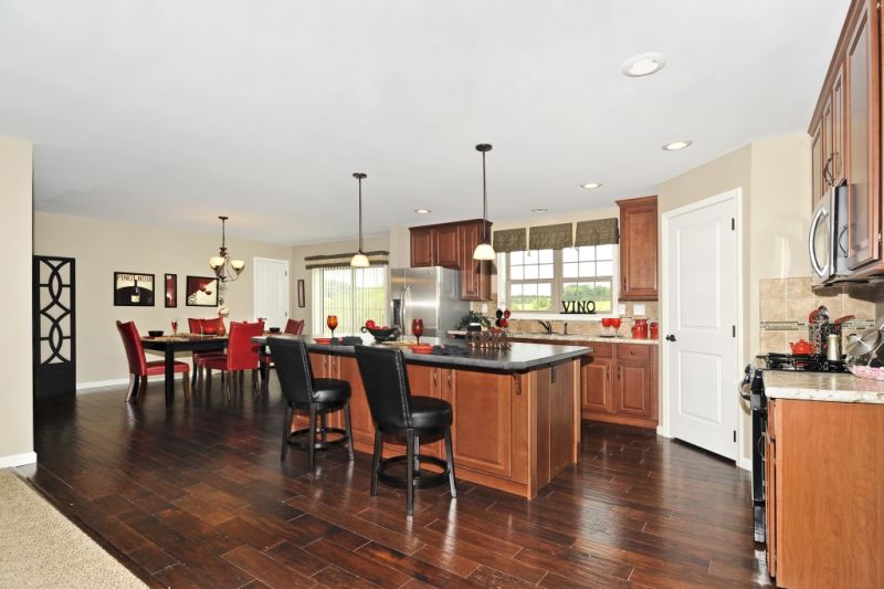 The Benton modular home has a great open floor plan. Upon entering the home you enter the very large living room, which is open into the spacious kitchen. The kitchen has a very large optional island with an overhang for stools. A walk in pantry provides extra storage space. The eat in kitchen nook is a very spacious area that has a beautiful tray ceiling option. The nook also features a pantry closet.