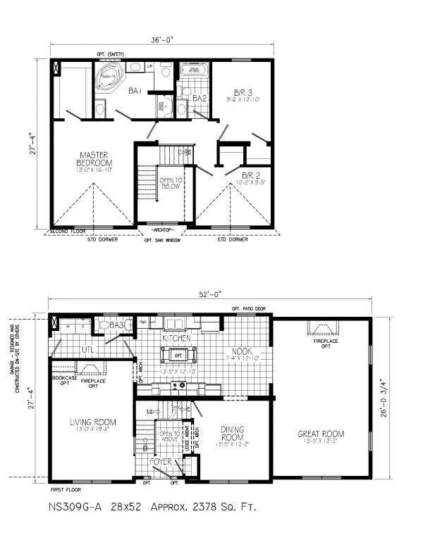 This 3 bedroom, 2.5 bath and 2378 sq ft model called the "Rock Star" has the features of a standard NS309A model plus an added Great Room where your very own rock stars may perform or you may watch your favorite professional stars perform on a home entertainment center. It is well separated from the Living Room, allowing for privacy in both living areas. The addition of the Great Room increases the living space to approximately 2378 sq ft.