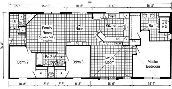 This beautiful double-wide home has an extra living space! Separated by the kitchen nook area, this floorplan offers both a living room and a family room.
